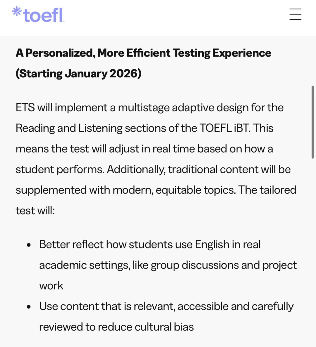 今年申请的学生完全不受到托福改革的影响,建议大家在改革全面落地前(尤其是2026年1月前),